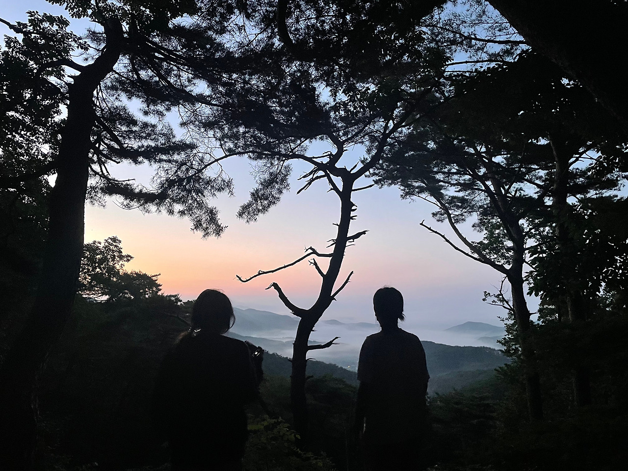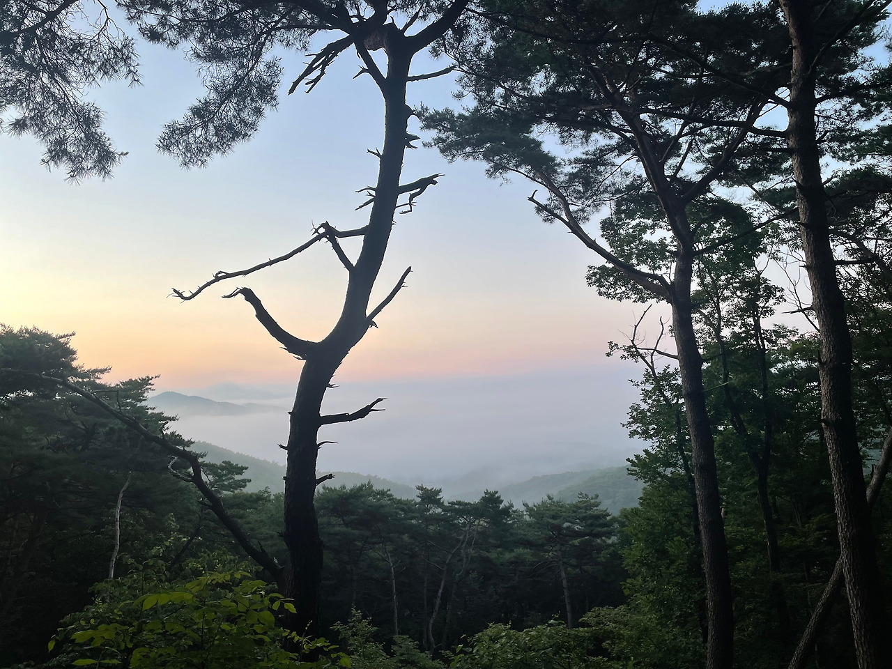 아침에 일어나 예불드리고 일출 보러 올라갔다. 안개가 자욱하여 하늘과 땅의 경계가 없었다. 바다 같았다. 내 눈에 있는 나무 한 그루가 전망을 망친다고 생각하지 않았다. 있는 그대로도 하나의 그림이 되어 자연스럽다고 생각했다. 조금씩 받아들이는 방법을 배우고 있다.