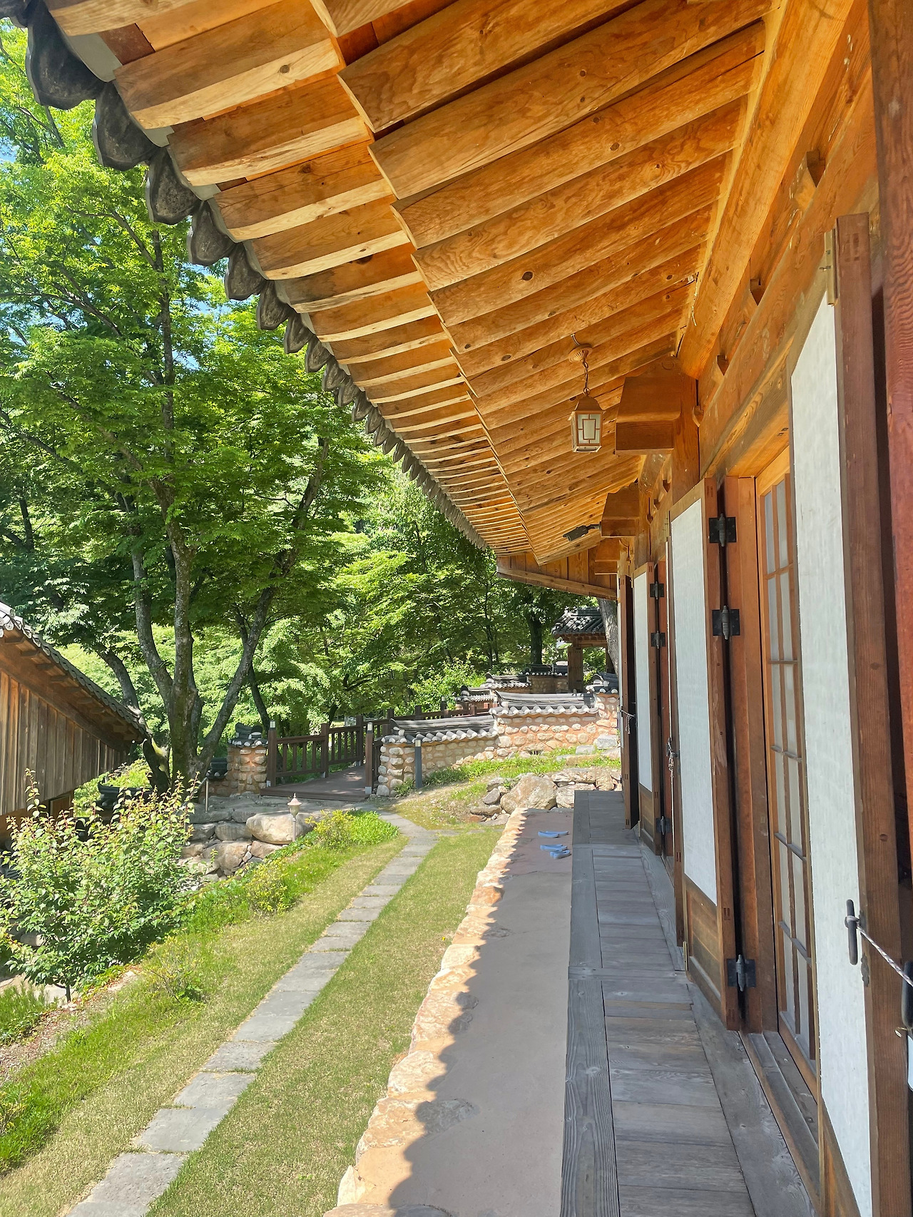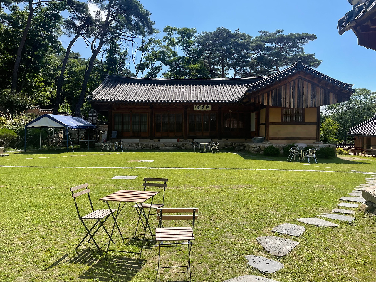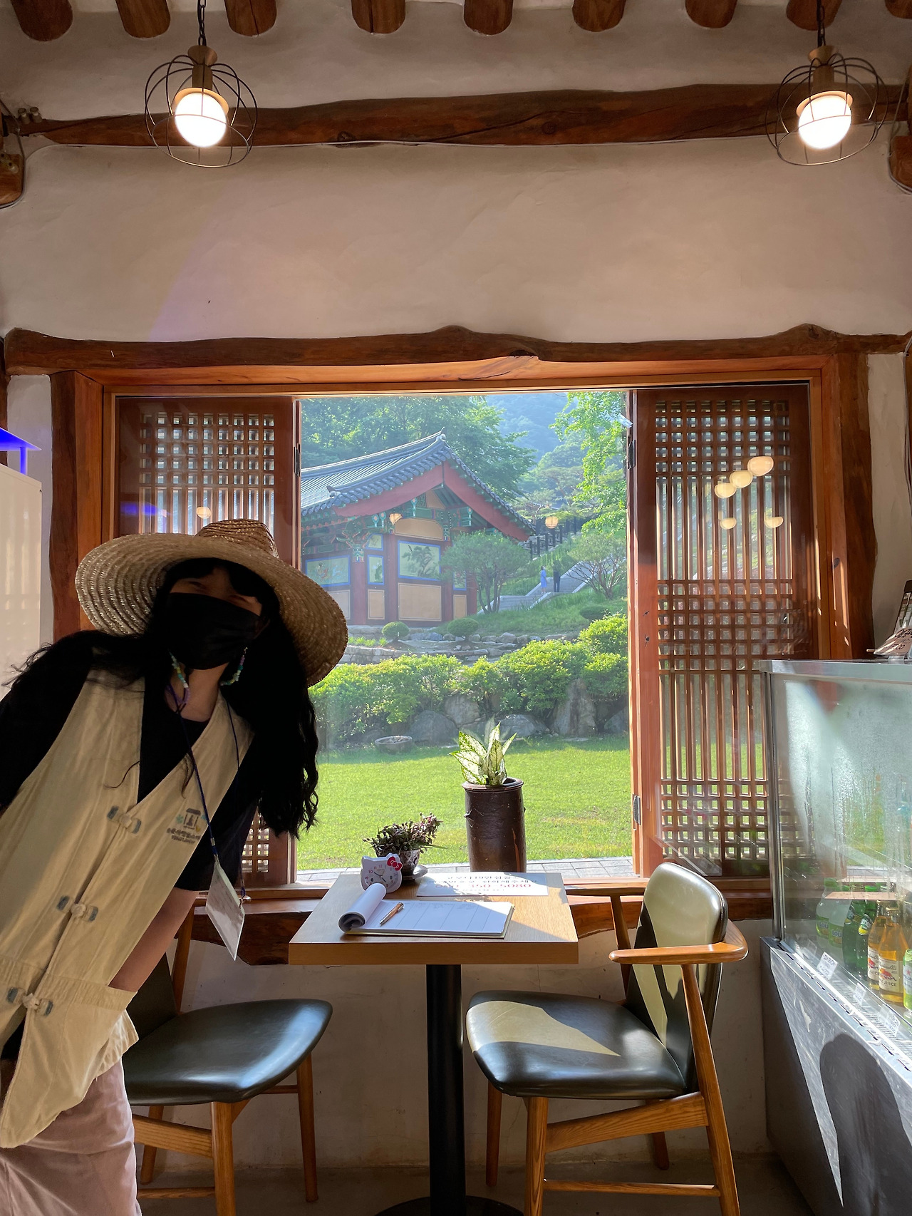 5시 30분이 되자 사람들은 잔디밭으로 모였다. 스님은 반갑게 우리를 맞이해주셨고, 사찰 하나하나를 설명해 주셨다. 불교를 잘 몰랐기에 설명은 어려웠지만 괜찮았다. 우린 배우러 온 게 아니라 머물기 위해 온 거니까. 사찰 투어가 끝나고 식당으로 갔다. 음식을 남기면 다음 생에 소로 태어난다는 말에 내가 먹을 수 있는 만큼만 담았다. 부족하면 더 먹으면 된다. 식당 안에는 묵언으로 오로지 밥 먹는 일에만 집중해야 한다. 천천히 씹으며 나물의 양념을 음미하고, 심심하고 짭조름한 반찬을 먹었다. 기대한 만큼 절밥은 맛있었다. 다 먹고 내가 먹은 그릇을 설거지하고 나오자마자 친구들끼리 "대박이다..."라고 감탄했다. 매일 고기만 먹다가 고기 없는 나물반찬을 먹었다. 맛있었다. 건강해지는 느낌도 있었고 진짜 불교를 체험하는 기분도 들었다. 먹고 잠깐 계단에 앉았다. 바닥에 쉬고 있는 나비들도 있었고, 땅을 빠르게 이동하는 개미도 있었다. 예전 같으면 놀라거나 자리를 이동했을 텐데 가만히 앉아서 그 곤충과 벌레를 봤다. 나에게 해가 되지 않다는 걸 알기도 했고 모든 생명은 소중하다는 불교의 뜻을 따르고 싶었다.