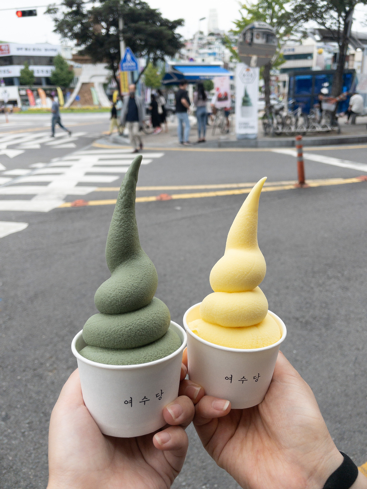 드라마 <알고 있지만>을 보는데 바다가 너무 예뻤다. 마음만 먹으면 매일 인천 바다를 볼 수 있지만, 그것과는 다른 느낌이다. 조금 멀리 떠나고 싶기도 했고, 다른 색감의 바다를 보고 싶기도 했다. 우리 집 근처에 있는 바다와 달리 여수 바다색은 청량했고, 동네 분위기는 포근해 보였다. 바로 비행기를 예약했다. 혼자 조용히 가기보다 뭔가 떠들썩하고 요란하고 싶기도 해서 친구와 같이 떠났다.