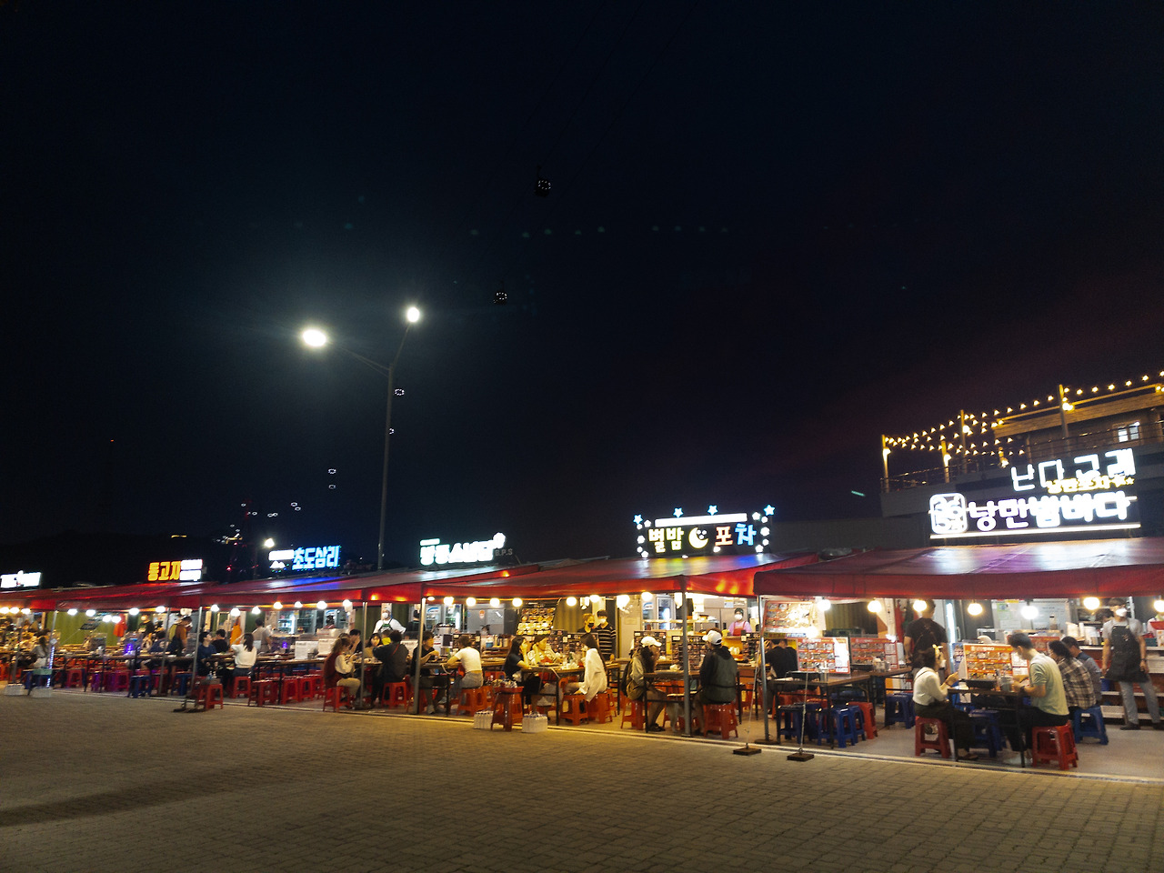 낭만포차에 가서 음식을 주문하고 맥주와 소주를 시켰다. 간판에 들어온 불과 바다 위를 지나가는 크루즈, 저 멀리서 반짝이는 불꽃놀이까지. 이 순간을 로맨틱하지 않다고 할 수 없었다. 술이 계속 들어갈 만큼. 케이블카 타는 곳까지 걸어 올라갔다. 짧지만 긴 여운이 있었던 바다를 보며 잔나비 <외딴섬 로맨틱> 카더가든 <로맨틱 선데이> 음악을 들었다. 드라마 한 장면 같았다. 음악으로 여행을 기억하기도 한다. 왠지 이 음악만 들으면 여수 밤바다가 생각날 것만 같다.
