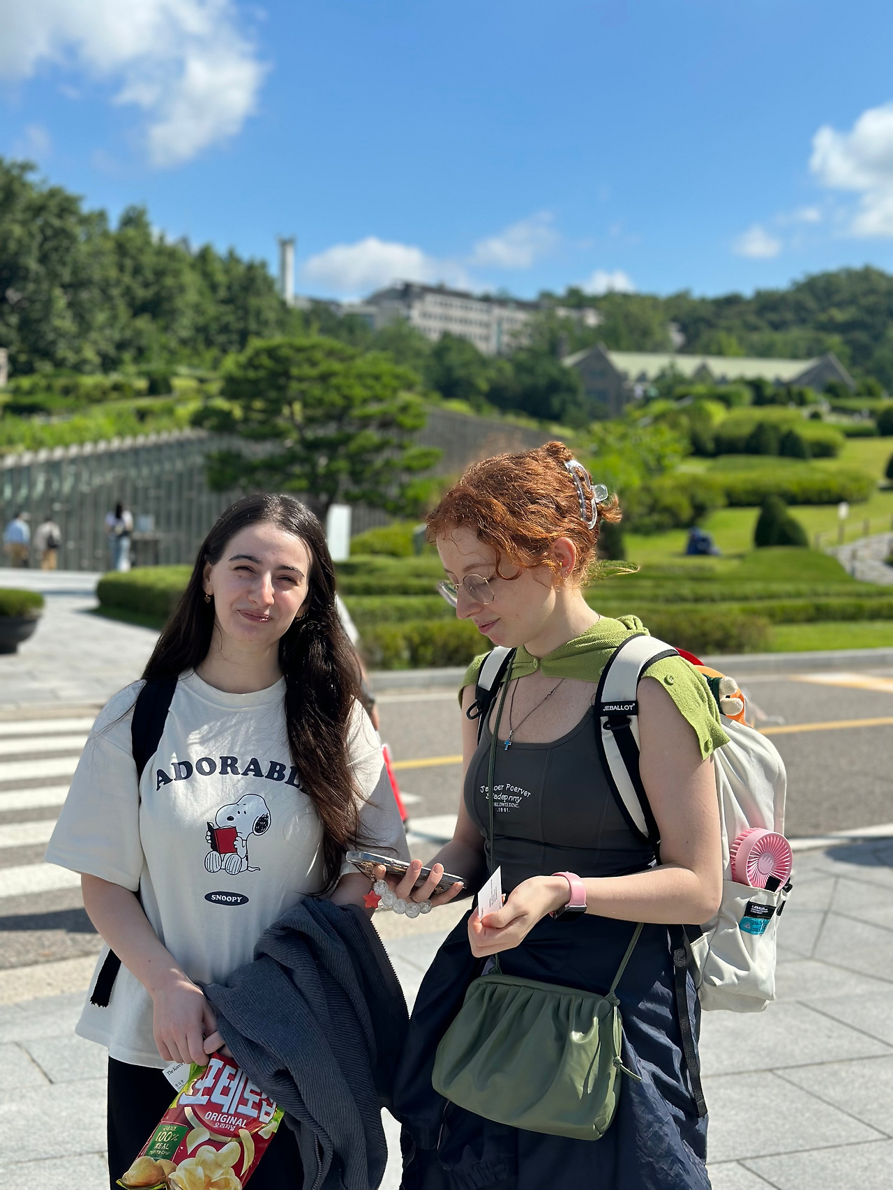 Mariam Siradze (24) and Mariam Chkhaidze (24), both hailing from Georgia, are graduate school students at Ewha Womans University in Seoul. They embarked on a journey of over 7,300 miles to pursue their studies in Korean literature.