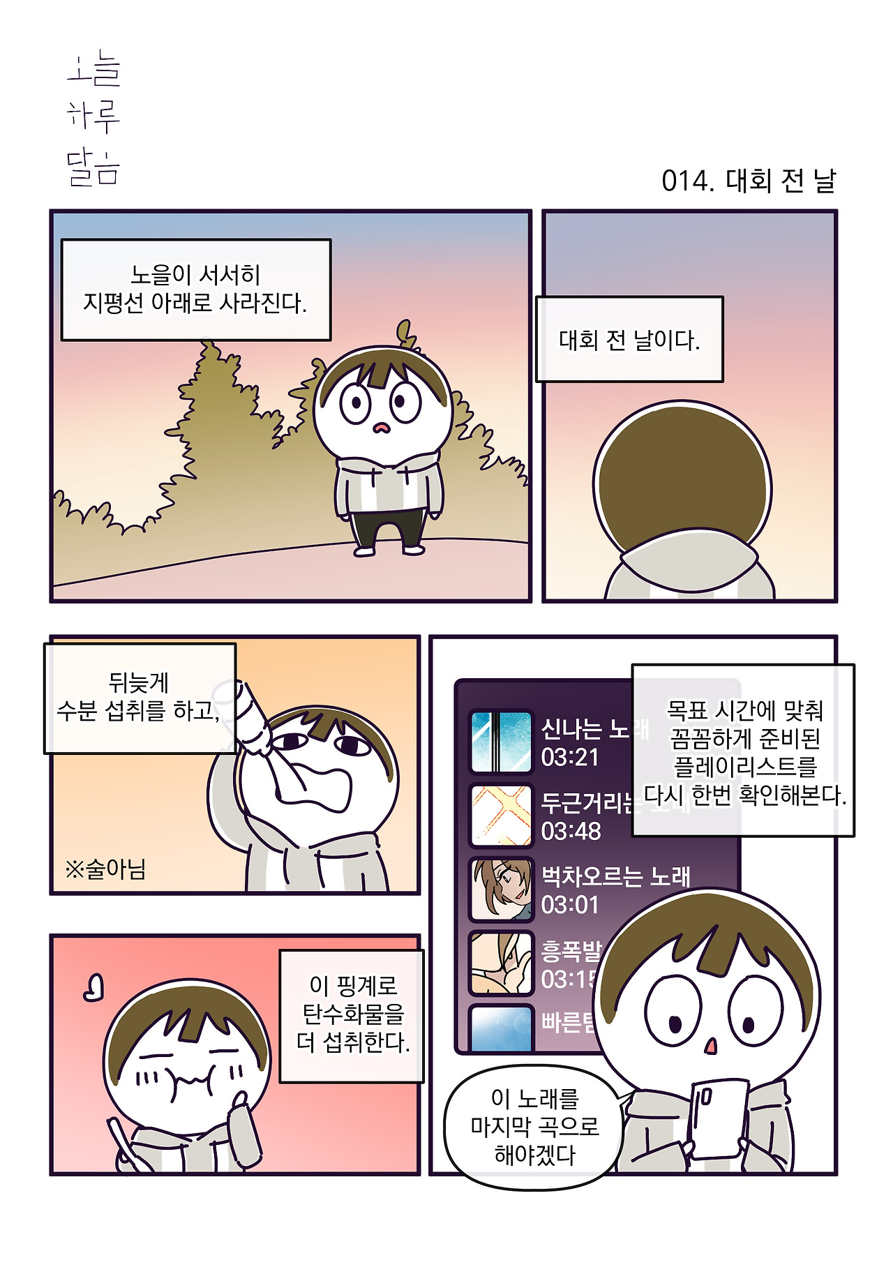 목표 시간에 맞춰 꼼꼼하게 준비된 플레이리스트를 다시 한번 확인해본다.