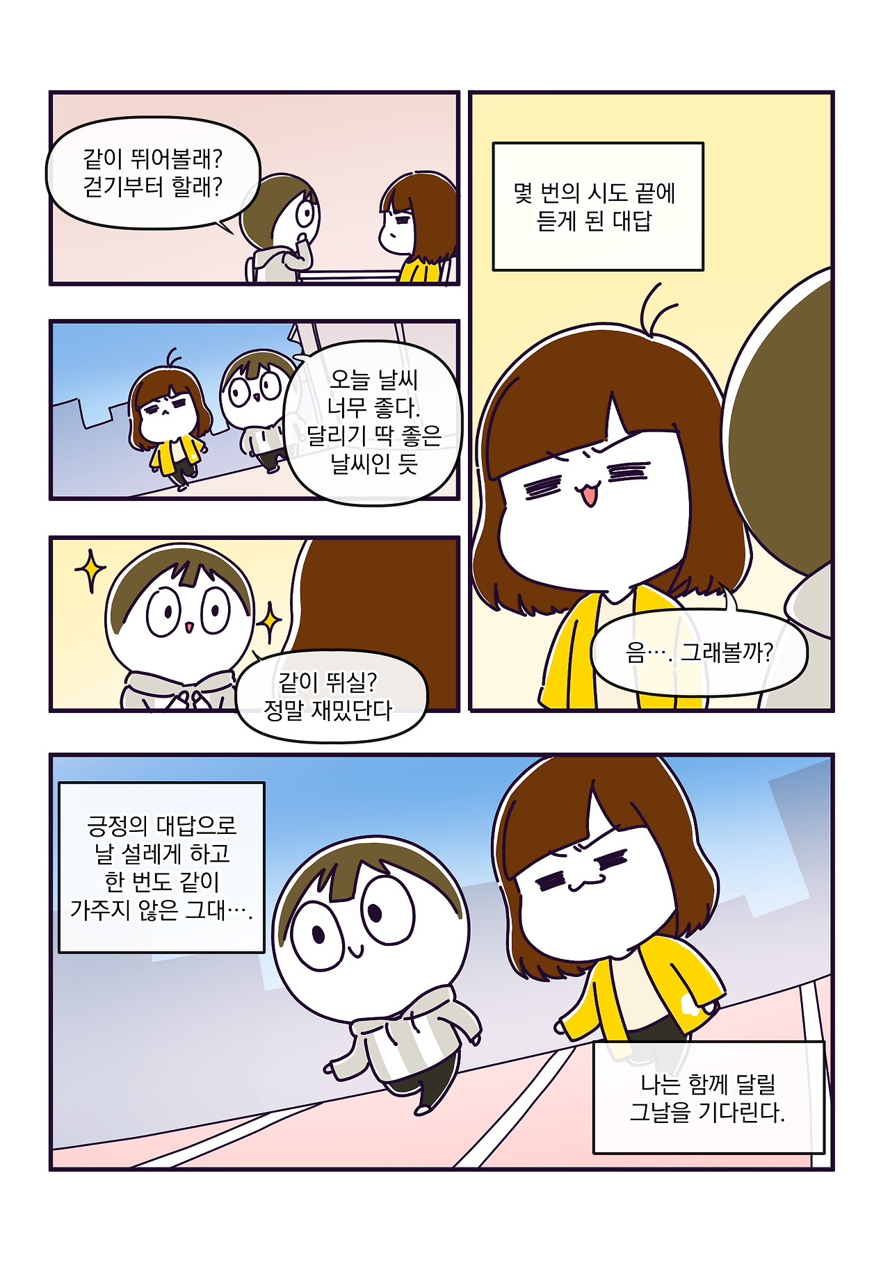 "오늘 날씨 너무 좋다. 달리기 딱 좋은 날씨인 듯"