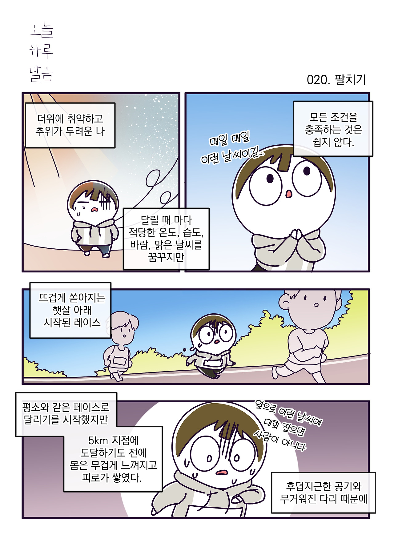 달릴 때 마다 적당한 온도, 습도, 바람, 맑은 날씨를 꿈꾸지만