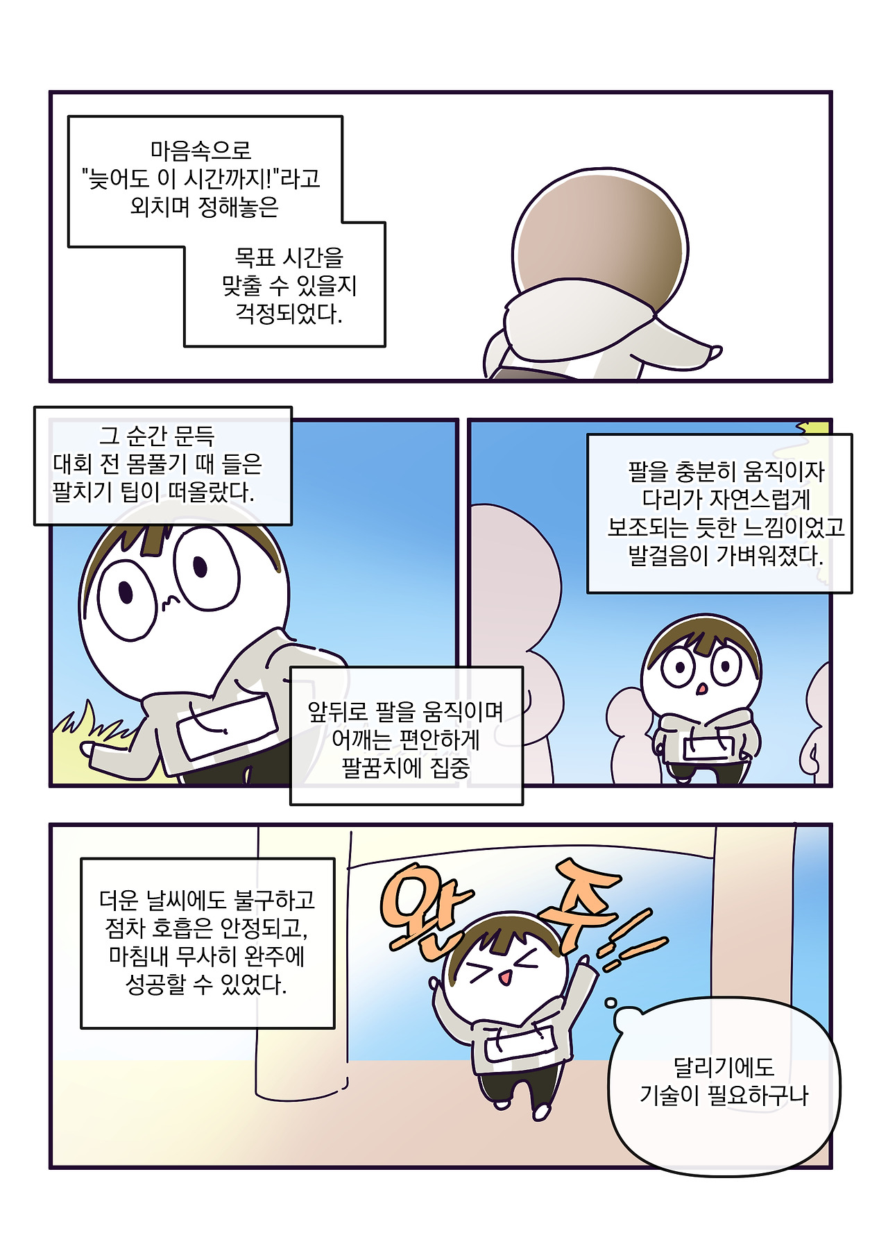 팔을 충분히 움직이자다리가 자연스럽게 보조되는 듯한 느낌이었고