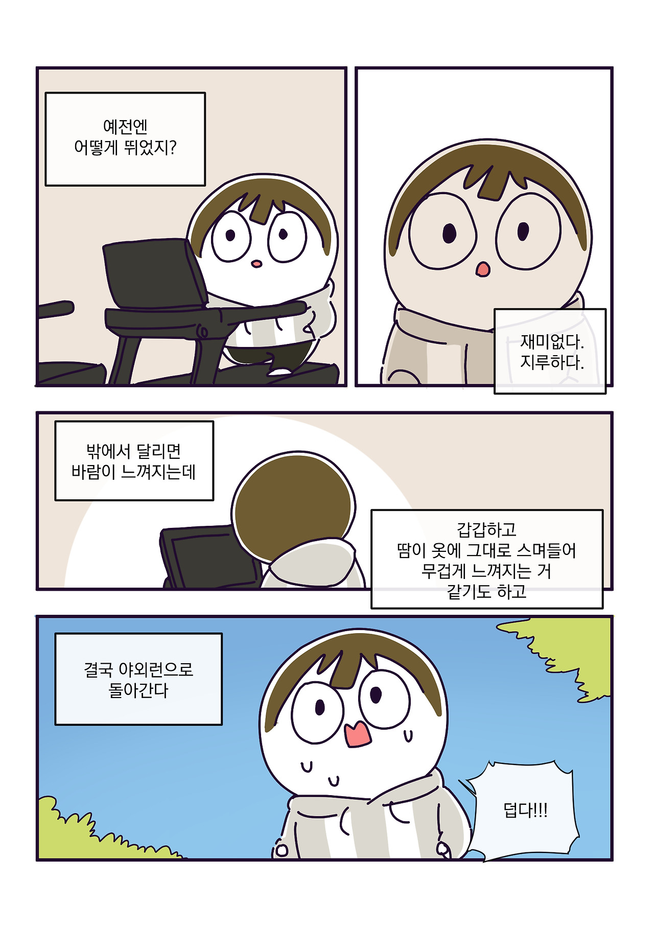 갑갑하고 땀이 옷에 그대로 스며들어 무겁게 느껴지는 거 같기도 하고