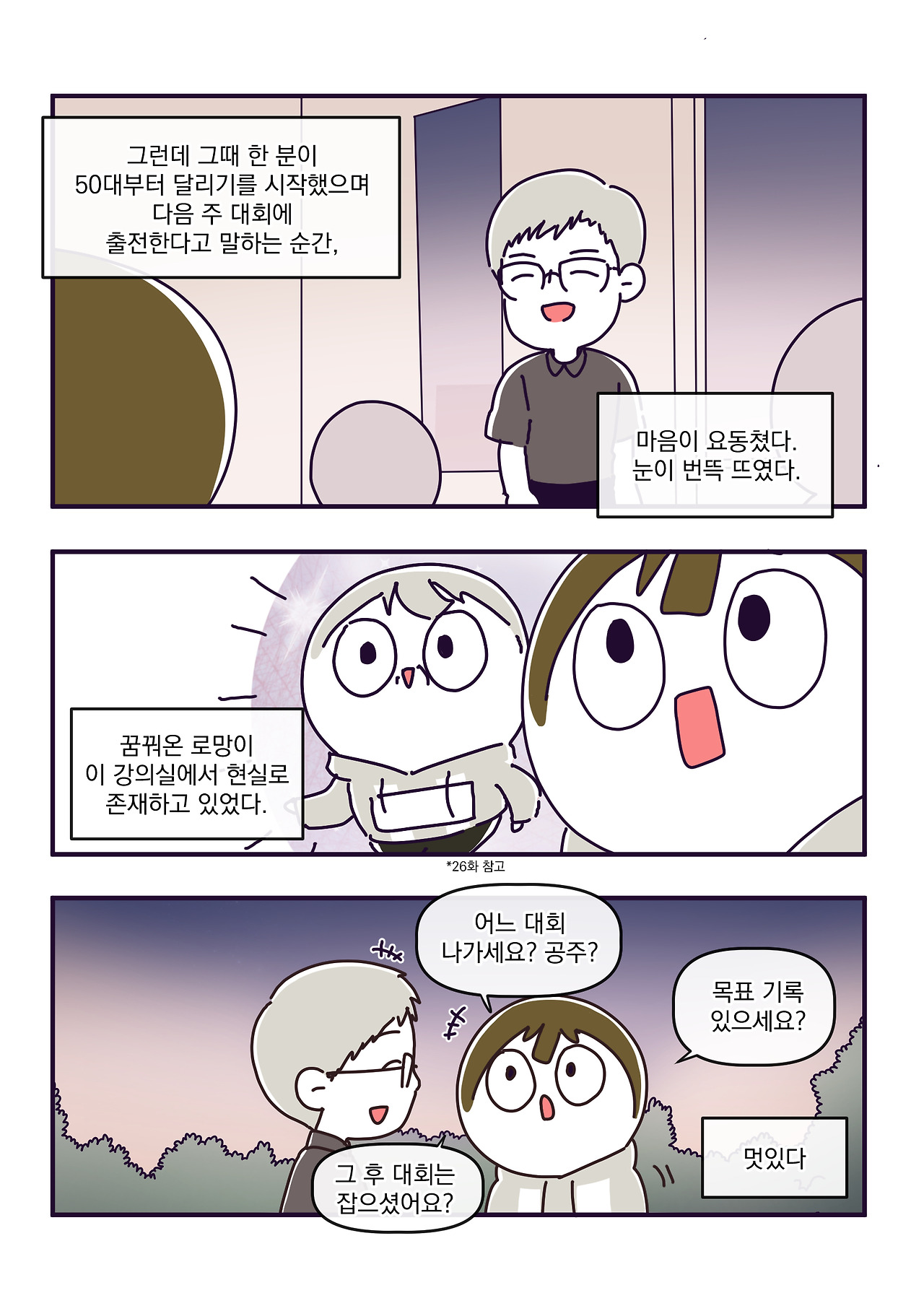 그런데 그때 한 분이 50대부터 달리기를 시작했으며