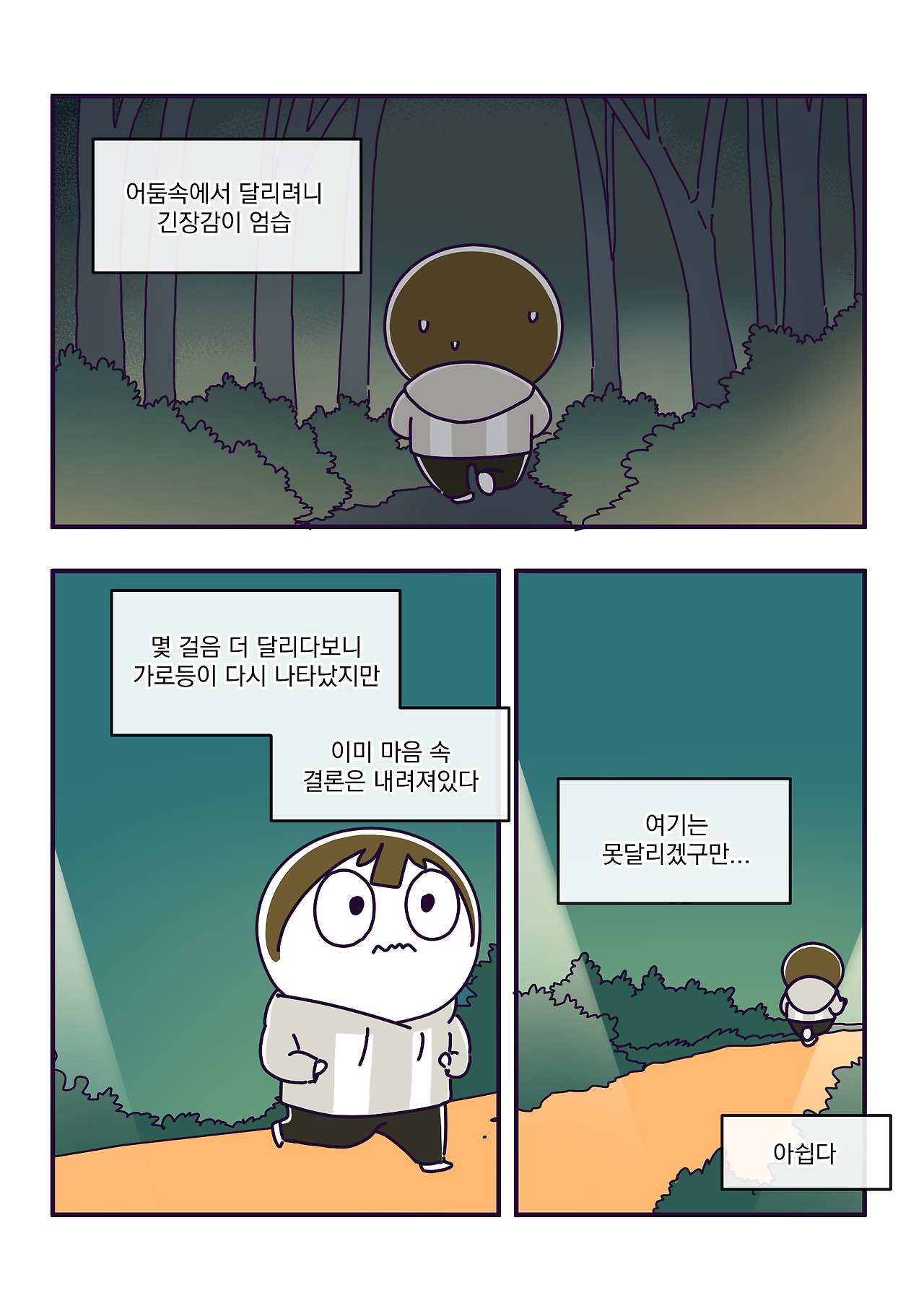 몇 걸음 더 달리다보니 가로등이 다시 나타났지만