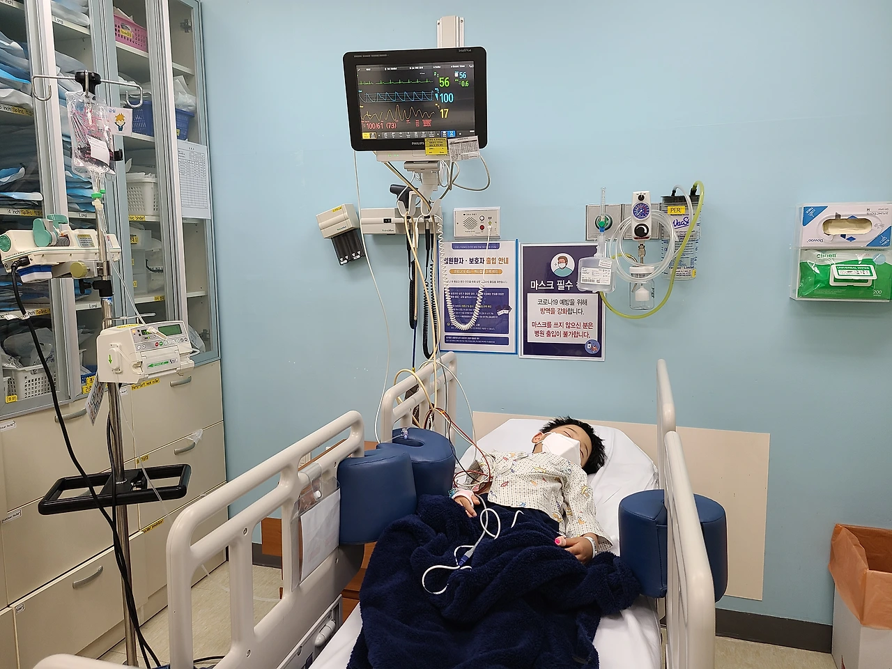 아침 7시, 옆 베드의 아가는 응급 수술에 들어갔다. 아이를 베드에 실어 나르는 모습을 보며 보호자에게 인사를 나눈다.