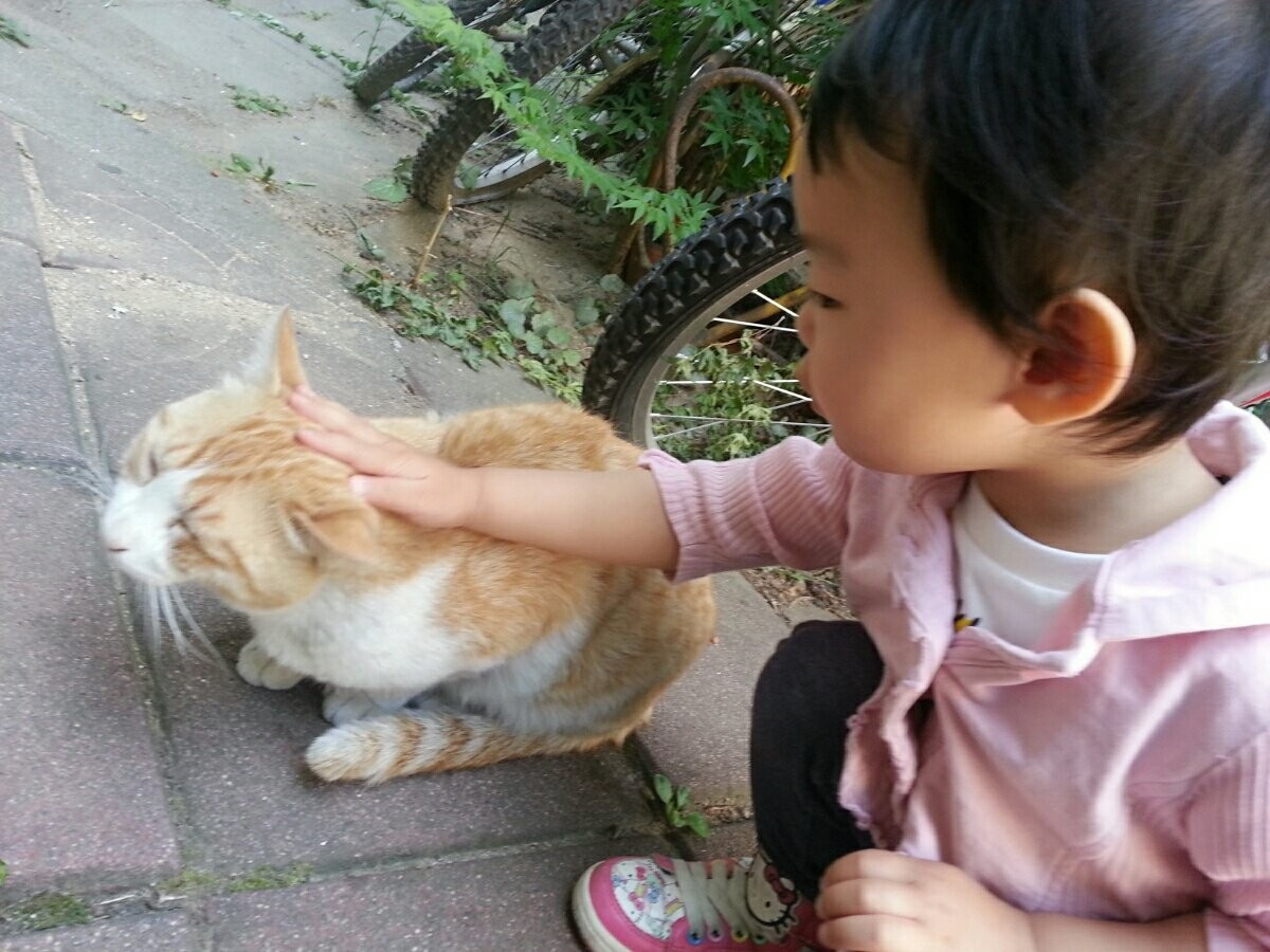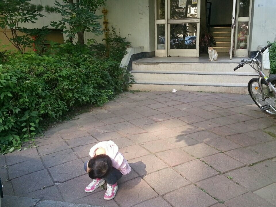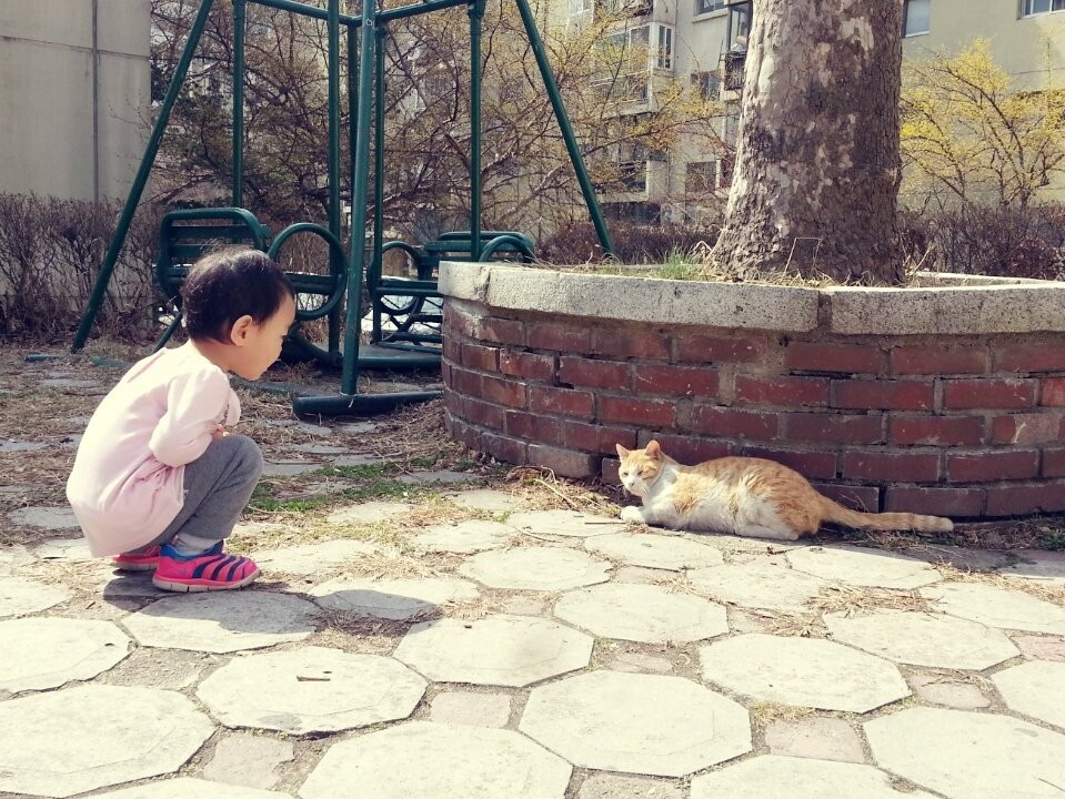고양이를 찾는 나의 딸을 물끄러미 뒤에서 바라보는 고양이