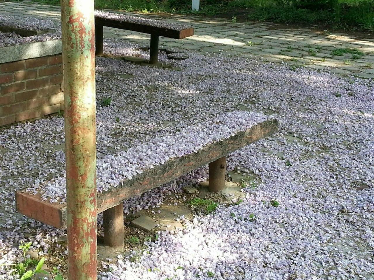 보석같이 수놓아진 등나무 꽃잎 카펫