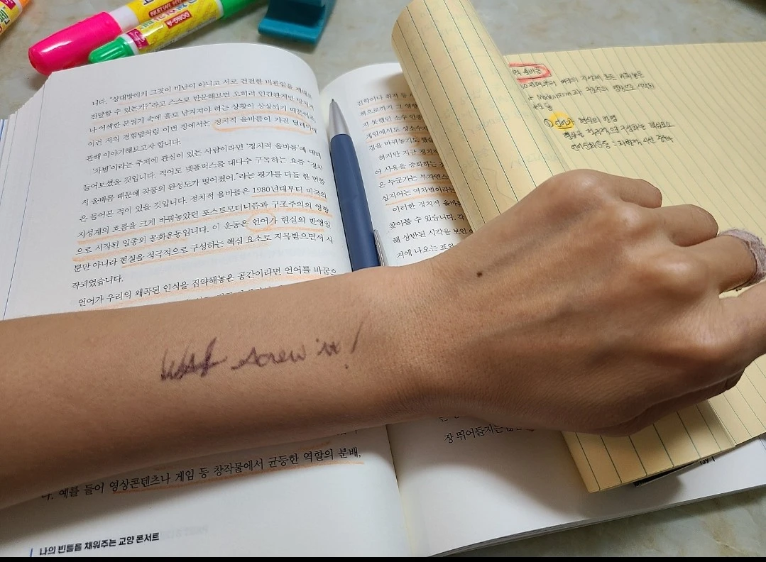 그냥 될 대로 돼라. 너의 영역이 아니다. 최선을 다하되 아이의 몫과 판단은 남겨두어라. 그것에 있어서는 네 관할이 아니므로. 마음 편히 생각하련다. 이 생각이 자꾸 몸 안에 들어오지 않아서 볼펜으로 썼다. 팔의 문신처럼.