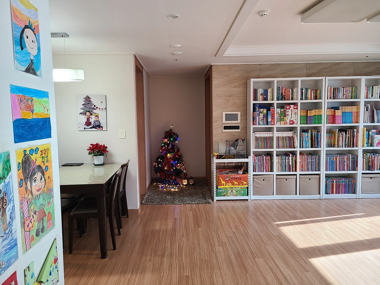 넓게 다 같이 잘 수 있는 공간은 거실뿐이다. 커다란 요 세 장을 깔고, 두꺼워진 이불을 덮으며 옹기종기 모여 끝말잇기와 엉뚱한 이야기들을 한 후 잠이 든다. 식구 모두가 잠이 들면 나는 안방의 침대로 향한다. 거실에는 신랑이 양 옆에 아이들을 두고 잔다. 신랑이 새벽에 출근할 때면 어김없이 작은 아이가 깬다. 아빠가 세수하고 이 닦고 면도하는 것을 빼꼼히 쳐다본 후, 출근하는 아빠를 꼭 안아준다. 안방에서 자던 나는 신랑의 출근 준비 소리에 거실로 나오고 배웅을 마친 작은 아이와 함께 거실 요에 다시 눕는다.