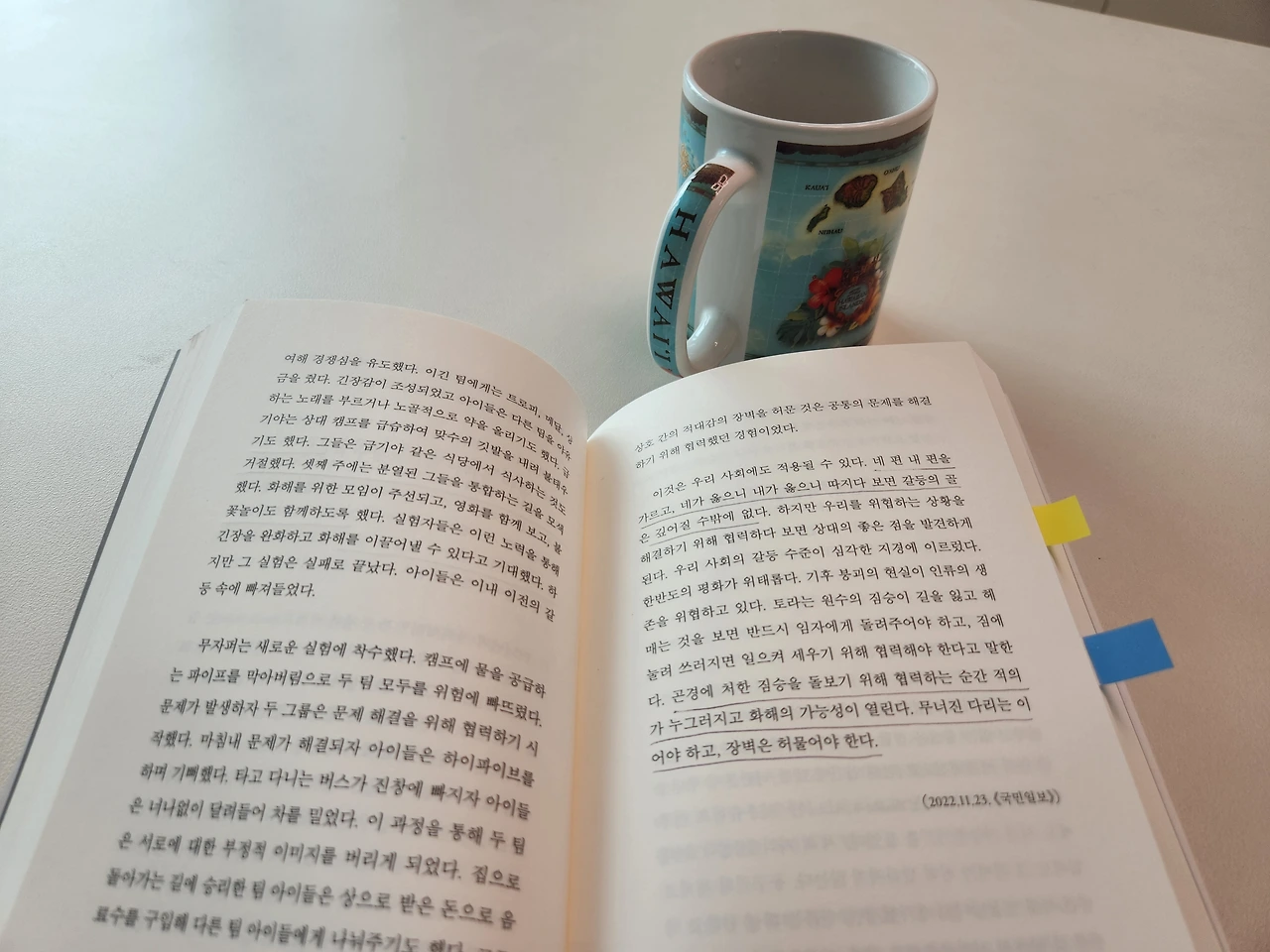 자석과 머그컵. 여행지에서 늘 가져오는 기념품. 가져오기에 비교적 간단한 자석과 달리 머그컵은 품이 많이 든다. 깨지지 않게 보통 컵 안을 속옷으로 채우고 컵 바깥을 티셔츠로 돌돌 만 다음, 캡 등의 모자에 쏘옥 넣어오곤 한다. 그렇게 애지중지 가져온 컵들은 독서의 좋은 벗이 되어준다. 아이들이 손쉽게 찾아 마실 수 있게 컵은 주방 하부장 식기세척기 옆에 두는데, 이곳을 열 때마다 진한 행복이 올라온다. 읽을 책이 있고, 마실 차가 있고, 마실 컵을 고를 수 있다는 것은 참으로 감사한 일이다.