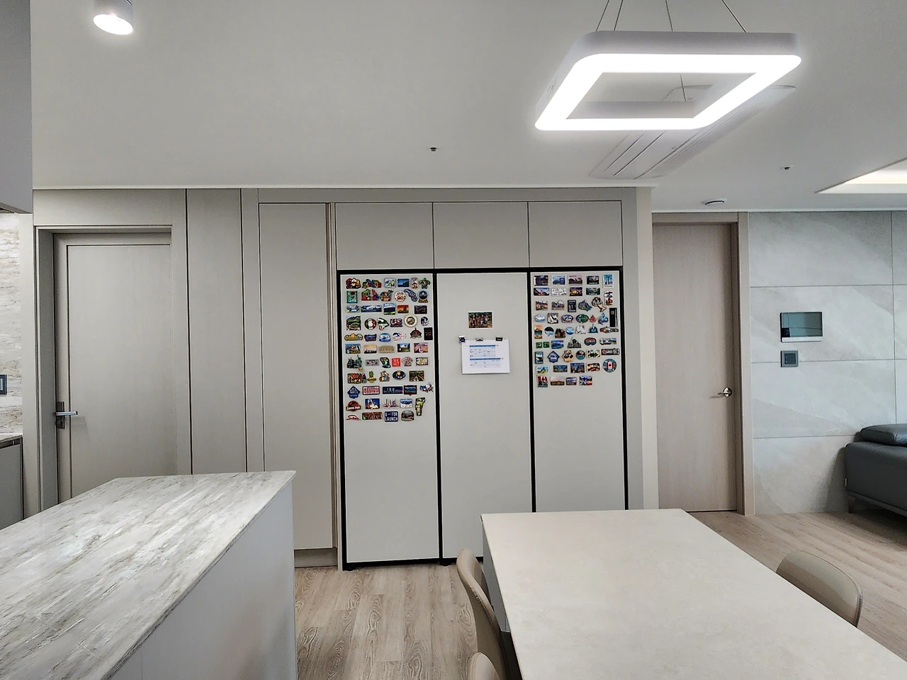 알록달록한 어린이집 형태의 지난번 집과 달리 화이트톤의 모던한 느낌의 지금 집에서, 내게 가장 큰 물욕이었던 책과 여행을 마음껏 뽐내본다. 톤 다운되고 물건이 사라진 자리에서, 삶의 우선순위를 두었던 소비들이 더욱 도드라진다. 냉장고 표면은 덕지덕지하나 그 앞에 서서 하나씩 자석 구경을 할 때마다 여행지에서의 추억이 하나 둘 되살아난다.