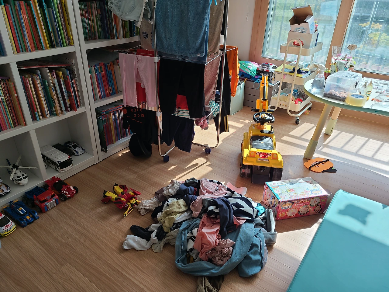 둘째 아이에게 점심을 차려주려 잠시 쌀을 씻고 밥을 안치고 뒤를 돌아보았는데, 거실 빨랫대 앞에 새로 한 빨래 거리가 수북이 쌓여있다.'벌써 빨래가 다 되었나? 내가 저걸 언제 꺼내 놨지?' 이상하다, 생각하며, 너무 정신이 없어 깜빡깜빡하는 나의 정신을 가다듬을 때, 저만치서 혼자 장난감 자동차를 바닥에 굴리고 있던 아들 녀석과 눈이 마주쳤다.