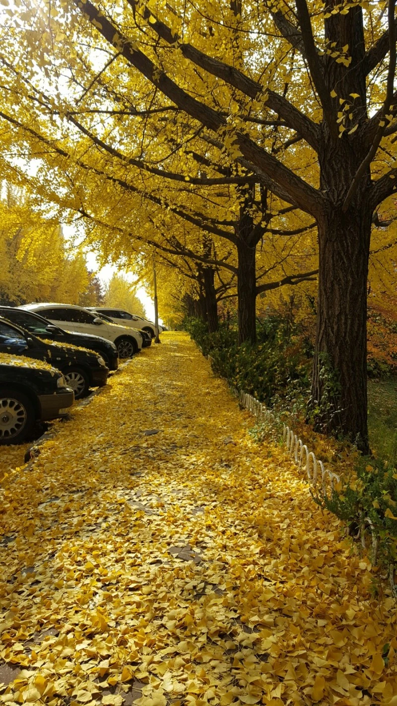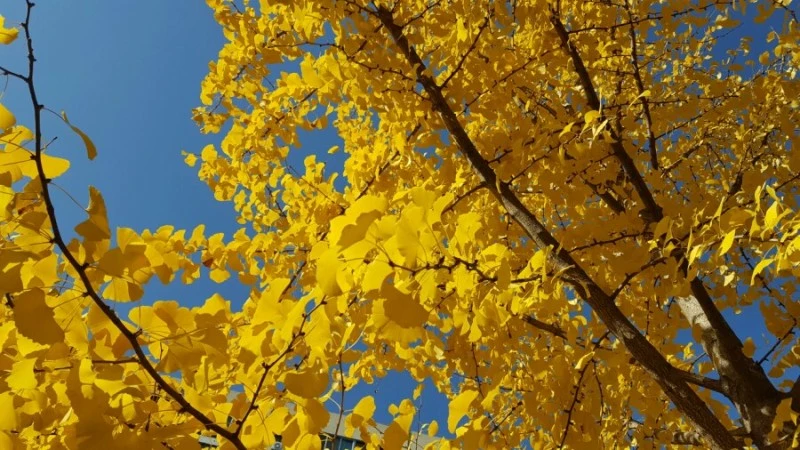 금빛 은행잎이 우수수 날리자, 아이의 눈동자가 초롱초롱 빛났다.