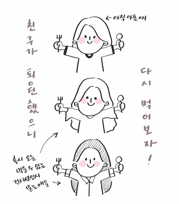 #유유상종 #수술후회복 #얼추됐으니까 #오늘혹시 #먹을수있니-퇴근시간 급히 수술후 아직 아픈 친구의 컨디션을 확인한 뒤 마치 안부차 들른 척 회사앞에 찾아가주변 맛집을 인도하게 만드는 것이 나으 빅픽쳐