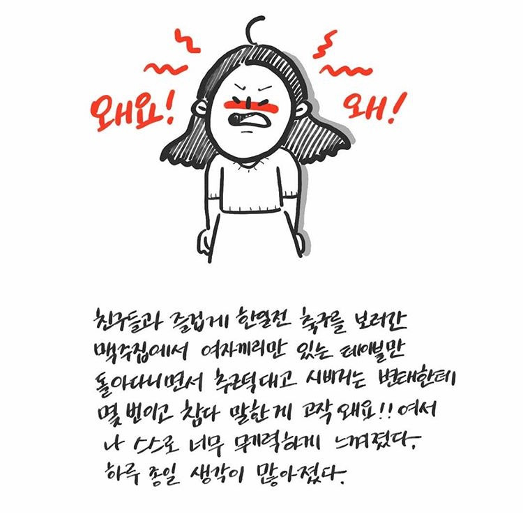 #짜증나-갑자기 병 깨서 날 찌르진 않을까 날 잡고 때리면 피할 수 있을까우릴 기억했다가 쫓아오진 않을까이런 생각들로 참고 또 참고 또 견디다 내뱉은 말이 고작아 억울하다