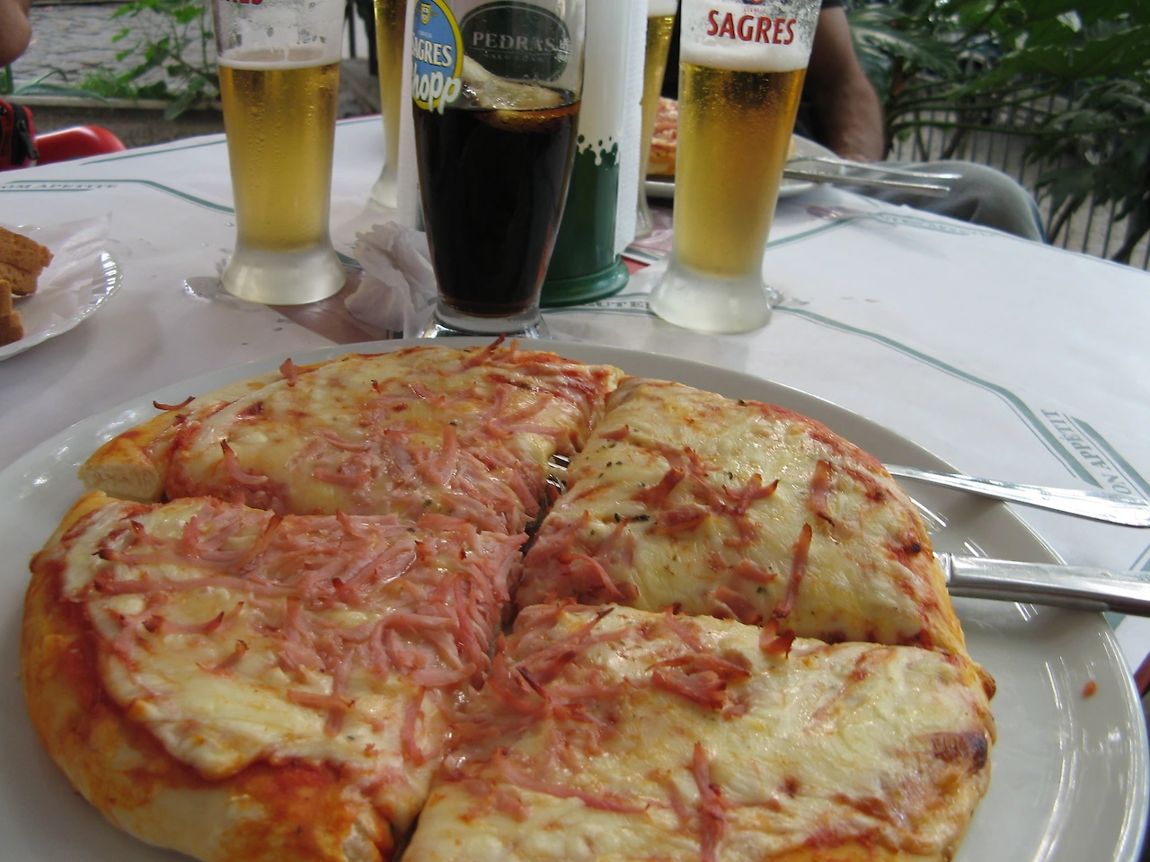 지치고 배고팠다. 짐 풀고 나와 피짜리아(피자 가게)에 앉아 마르게리따를 시켜 늦은 점심을 먹었다. 우리나라도 이제 그렇지만 전 세계 어디든 이탈리아 음식점이 없는 곳은 없는 듯하다. 사진의 혼자 먹을 수 있는 크기의 피자가 5유로 정도. 물론 맥주도 빠질 수 없다. 지금까지 매일(!) 마시던 Super Bock이 아닌 Sagres가 보인다. 이것 역시 포르투갈 맥주인 듯. 지역마다 다른 맥주를 마셔보는 것도 여행의 큰 즐거움이다.