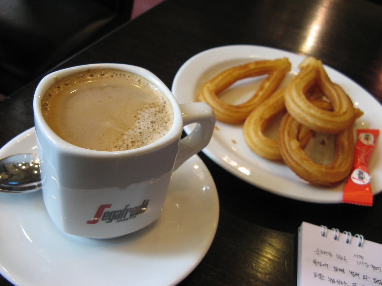 잠시 후 다시 기운 내서 일어나 보았으나, 토요일 이른 아침이라 상점 연 곳도 없고 도무지 할 것이 없었다. 에스파냐 광장까지 목적 없이 마냥 걷다가 주머니에 돈도 있는데 너무 궁상인 것 같아 2유로에 아침식사 주는 카페에서 카페콘레체에 추로스를 먹으며 시간을 좀 보냈다.