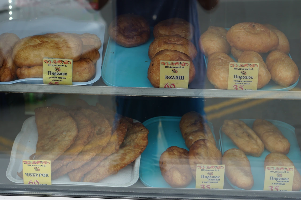 여행 준비하면서 가이드북에서 본 길거리 음식, 삐얀세, 체부레끼, 삐라족, 쌈싸, 샤우르마 등등. 너무나 맛있어 보였기에 기대가 컸다. 그런데, 정작 여행 다니면서 그런 길거리 음식을 먹을 기회가 없었다. 현지인들의 길거리 음식이라 관광지에는 없는 것일까? 그런데 그런 길거리 음식을 먹을 기회가 마지막 날 생겼으니, 바로 블라디보스톡 기차역 가던 길에!