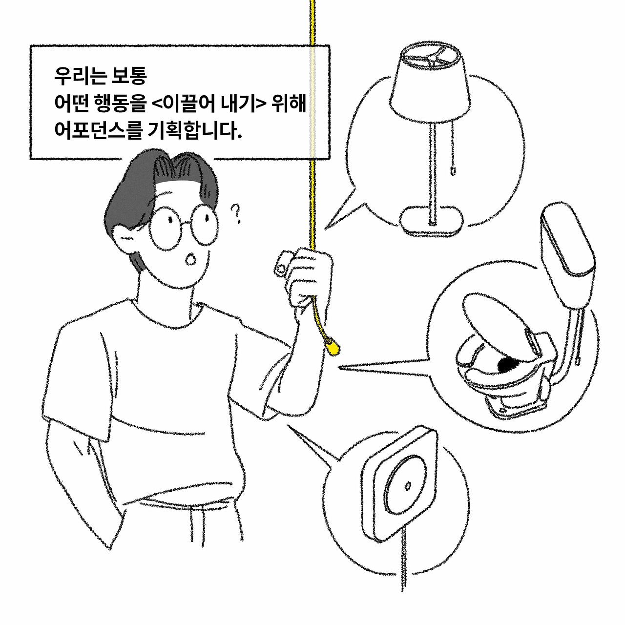 어포던스 (Affordance)는 어떤 행동을 유도한다는 뜻으로 행동유도성이라고도 한다.