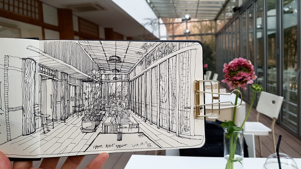 재미있다 보니깐 욕심이 생깁니다. 밑그림 없이 머리에 떠올린 이미지를 구현하는 방법이 없을까? 빈 종이에 내가 상상한 장소를 그려낼 수있을까? 이런 욕심에서 공부를 합니다. 옳은 방법인지는 모르겠지만 사소한 즐거움이 공부를 스스로 하게 만드는 긍정적인 상황을 감사히 받아드립니다.