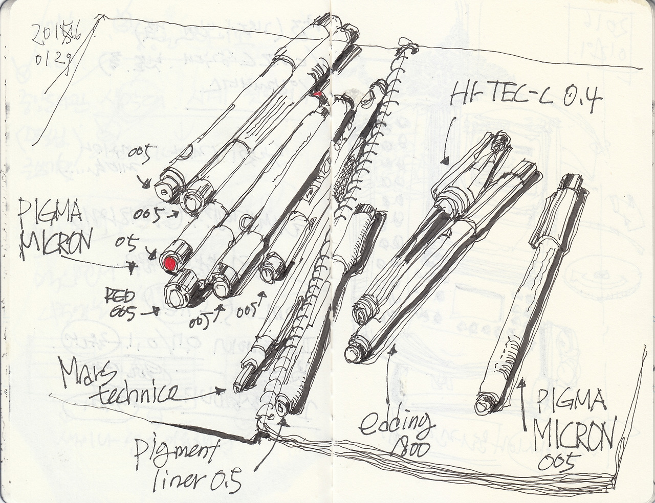 그림을 그리기 전에 펜의 뚜껑을 열어서 심의 길이를 확인하고 그림을 그리다 펜이 잘 안 나오면 (심지가 닳아져 종이를 긁게 된다.) 쓰던 펜을 책상에 내려놓고 새로운 펜으로 그림을 그린다. 그림을 다 그리면 그 버려야 하는 펜과 새 펜 모두를 가방에 쓸어 담고 다음 날 또 똑같은 행동을 반복한다. 그러다 보니 어느샌가 가방에는 같은 굵기의 펜이 5개씩 들어 있는 경우가 있다. 같은 굵기의 펜이 가방에 다섯 개가 모이기까지 얼마나 많이 "내일은 다 쓴 펜을 버려야지"라는 결심을 했을까?