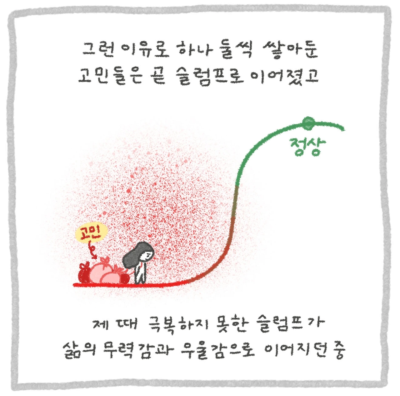나를 잠식시키는 삶의 문제가 누군가에게는 고민이 아닐 수 있고, 나의 우울감이 누군가에게는 별 일이 아닐 수 있기에 쉬이 말하기도 꺼내보이기도 어려운 고민. 꺼내기는 어려운 반면 꺼내지 않으면 쉽게 사라지지도 치유되지도 않는 그런 고질병.