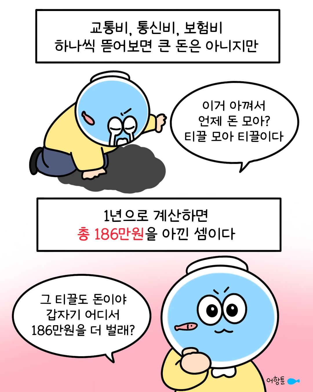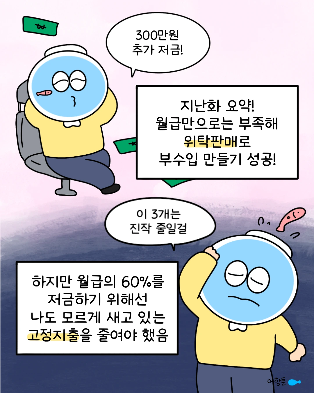 에세이툰을 그립니다.내 인생 가꾸기를 어항에 비유합니다.