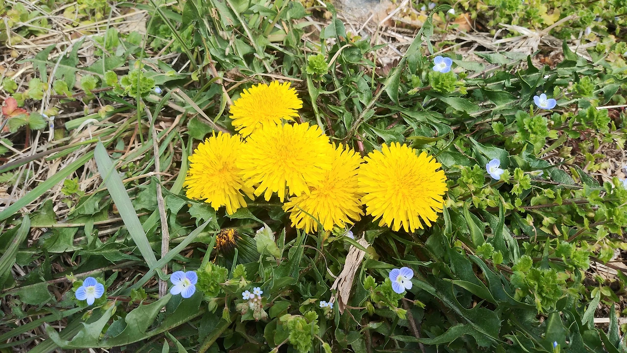 벚꽃이 보고 싶어 간 곳에서 뜻하지 않은 꽃을 보니 더욱 반가웠습니다. 더 아래에는 민들레와 자색 야생화도 봄 햇살을 향해 웃고 있었습니다.
