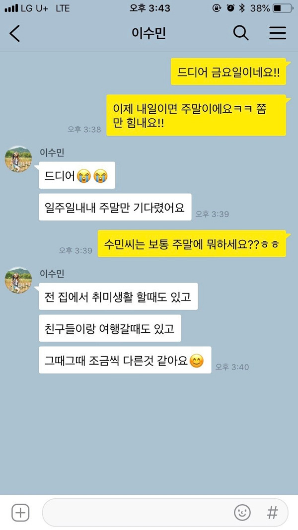 호감이 가는 상대에게 자연스럽게 나오는 질문이기도 하다. 혼자 있을 때, 쉬는 시간에는 무엇을 하며 지내는지 궁금해지니까. 이 질문을 통해 그 사람의 취미나 생활방식도 알 수 있다. 그리고 당신과의 공통점도 찾을 수 있는, 대화를 이어갈 요소가 많은 질문이다. 당신도 흥미가 있는 활동을 상대방이 언급한다면 적극적으로 공감대를 형성하자.