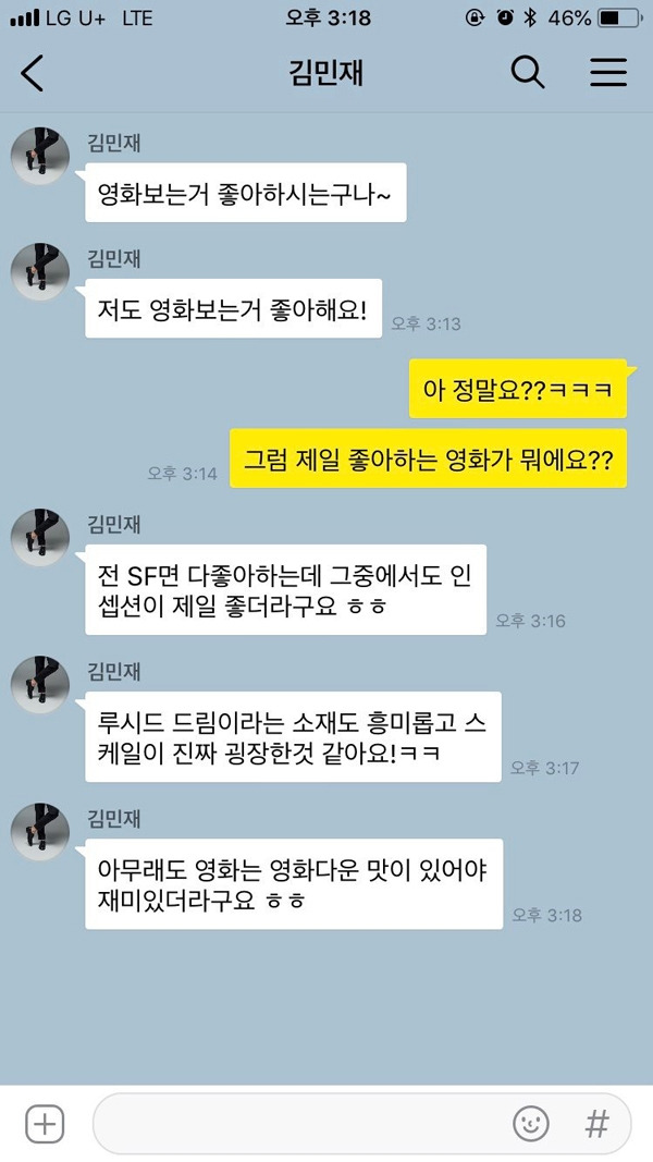 영화 역시 대화에서 활용하기 좋은 소재다. 이 질문에 단답형으로 대답하는 사람은 그리 많지 않을 것이다. 그 영화를 왜 좋아하는지, 어떤 점이 다른 영화와 다르다고 생각하는지 등등에 대해 이야기를 나누다 보면 그 사람의 미적 취향이라든지, 그 사람이 작품을 감상할 때 어떤 점을 중요시하게 보는지 등을 알 수 있을 것이다. 영화에 대한 취향은 서로 다른 경우에도 주거니 받거니 대화할 수 있는 내용이 많은 편.