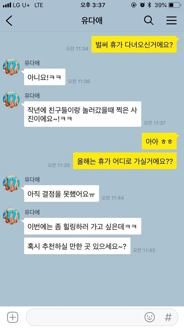 서로의 취향과 흥미 등에 대해 기분 좋게 이야기할 수 있는 질문이다. 더군다나 휴가를 상상하는 동안 기분이 나쁠 사람이 있을까? 자신이 좋아하는 것에 대해 이야기하다 보면 자신의 기분도 덩달아 좋아지기 마련이니 소개팅의 분위기도 한층 더 밝아질 것이다. 또 두 사람이 어떤 여행을 좋아하는지, 조금 더 나아가 어떤 가치관을 갖고 있는지도 알아볼 수 있는 질문이다.