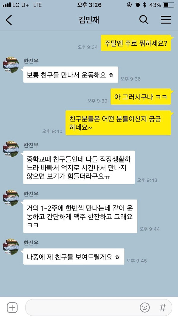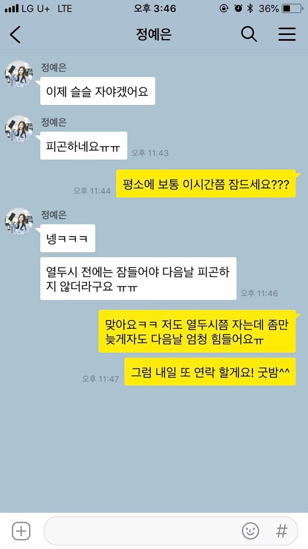 아침형 인간인지, 올빼미형 인간인지 물어보고 이에 대해 대화하는 것도 꽤 흥미롭다. 이 생활방식이 생각보다 서로에 대해 많은 것을 이야기해주기 때문이다. 아침형 인간이라면 좀 더 체계적이고 부지런하고 생산적인 삶을 추구할 확률이 높고, 올빼미형이라면 좀 더 감성적이고 한 번 집중하면 끝장을 보는 성격일 확률이 높다. 서로 비슷하면 비슷한 대로, 다르면 다른 대로 이야기를 나누어가면 된다. 상대방이 몇 시쯤 잠드는지 알게 되면 이후에 연락해도 괜찮은 시간대도 알 수 있으니 일석이조.