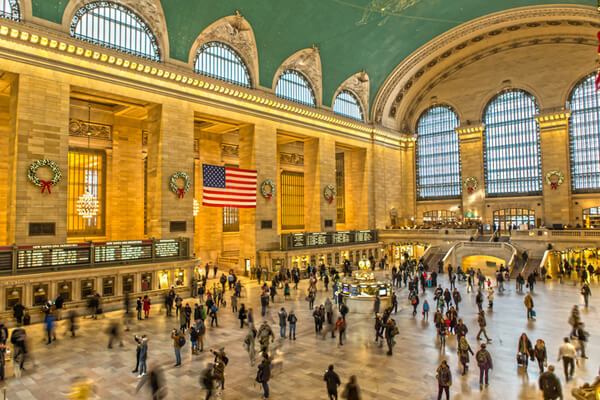 엄청난 규모 덕분에 뉴욕에서 가장 거대한 장소로 여겨지는 그랜드 센트럴 터미널은 보는 사람을 압도하는 건축 양식과 공학 기술이 만나 탄생한 공간이다. 뉴요커들의 통근을 책임지는 곳이기도 한 이곳은 미국 뉴욕 시 42번가와 파크 가의 교차점에 위치해 있으며, 44면 67선으로 승강장 숫자만으로는 전 세계를 통틀어 가장 큰 역이다. 역의 천장은 2,500여 개의 별들로 장식되어 있다.