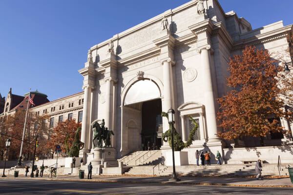 미국 자연사 박물관에선 지구의 성장과정을 한눈에 볼 수 있다. 1877년에 문을 연 이곳은 점차 성장을 거듭해 수십억 년의 자연 예술품들이 가득 차 있다. 높이 6m, 길이 12m의 공룡 뼈대, 푸른 고래 모사품, 463캐럿 사파이어인 '인도의 별', 31톤 무게의 운석 등이 전시되어 있다. 소장품은 총 3천 6백만 점으로, 박물관 하나가 도로 세 개의 블록을 차지하고 있을 정도이다.