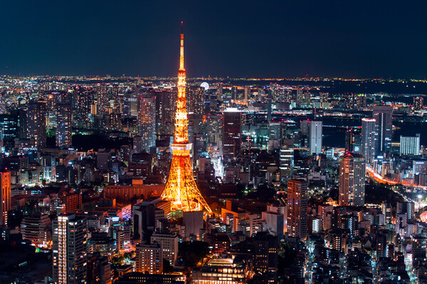 화려함의 극치를 보여주는 도쿄의 야경. 곳곳에 있는 야경 명소를 찾아가는 재미가 쏠쏠한 도시이다. 유람선이 유유자적 떠다니는 도쿄만이 한 눈에 보이는 오다이바와 도쿄 시내의 화려한 전경이 돋보이는 롯폰기 등 그야말로 반짝이는 스팟들로 가득하다. 특히 도쿄에는 도쿄타워, 도쿄스카이트리, 세계무역센터 전망대 등 야경을 사진에 담기 좋은 전망대가 여러 곳 있는 것이 특징으로 도쿄 시내를 한 눈에 내려다 볼 수 있다는 장점이 있다.