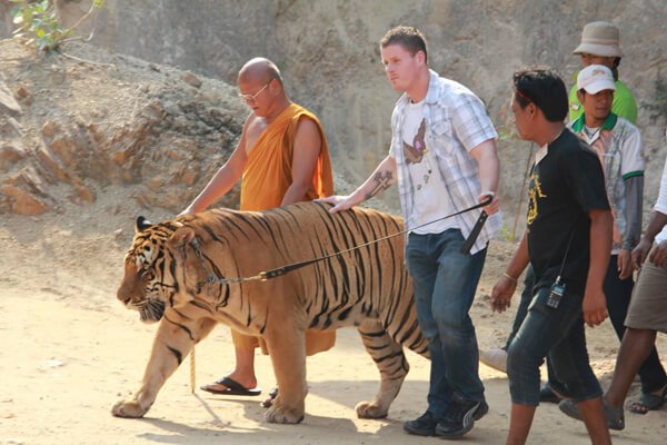 태국 현지인들도 불공을 드리러 많이 찾는 사원으로 태국 남부 지방에서도 손꼽히는 사찰 중 하나이다. 예전에 사원 근처 동굴 안에서 호랑이와 함께 수행하던 스님이 있다고 해서 이곳이 ‘호랑이 사원’이라고 불리고 있다. 현재도 석회암 동굴에서 명상을 하며 도를 닦는 스님들도 종종 볼 수 있다. 특히 이곳은 깎아질 듯 높이 솟아 있는 산꼭대기에 위치하고 있어 사원에 오르면 끄라비 전체를 한눈에 내려다볼 수 있다. 정상에 오르기까지 무려 1,237개의 계단을 올라야 하지만 가는 길에 바라보는 자연 풍경도 멋있고 사원에 도달했을 때 황금빛 탑과 거대한 불상도 볼 수 있다.