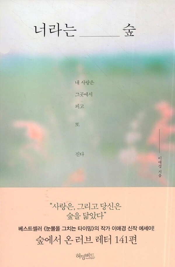 작사가이기도 한 작가 이애경의 <너라는 숲>은 사랑과 이별을 숲에 빗대어, 숲길을 거니는 듯한 여정으로 글을 차례차례 풀어나간다. 두 사람이 사랑하게 되는 일, 또는 엇갈리거나 헤어지게 되는 일은 풀과 나무가 자라고 시들듯 자연스러운 이치일지도 모른다고 말하는 에세이집.