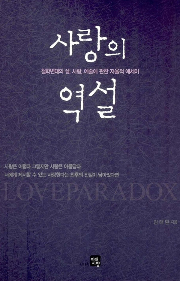 김태환 작가의 <사랑의 역설>은 사랑에 관한 자기 생각을 드러내는 짧은 글들을 통해 독자들에게 생각할 거리를 선사하는 에세이다. 작가는 사랑에 관한 에세이를 쓰고 있지만, 자신은 사랑에 관해 무지하다고 고백한다. 사랑은 우리가 알 수 없는 피안의 세계이며 알 수 없음을 받아들이는 게 진정한 사랑의 시작점이라는 것이다. 세밀하고도 보편적인 사랑의 단상을 통해 사랑을 마주하게 만드는 에세이다.