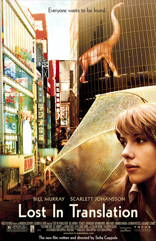 소피아 코폴라 감독, 빌 머레이와 스칼렛 요한슨이 주연을 맡은 2003년작 '사랑도 통역이 되나요?'는 지금 보기엔 스칼렛 요한슨이 매우 유명한 배우라 독립영화처럼 느껴지지 않겠지만, 영국 영화잡지 <엠파이어>에서 선정한 최고의 독립영화 50선에 꼽힌 작품이다. 중년의 황량한 내면과 방향을 잃은 젊음의 방황이 어우러지는 이 영화에선 침묵과 여백의 미학이 돋보인다. 스칼렛 요한슨은 이 작품에서 인정받은 연기력을 바탕으로 블록버스터에 진출했다.