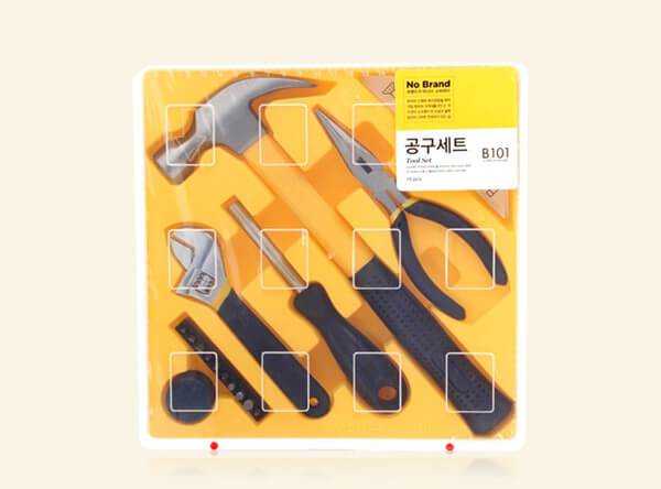 가정집에 공구 세트 한 개 정도는 구비되어 있어야 여러모로 편리하다. 장난감 건전지를 교체하거나 벽에 못질을 하거나 혹은 DIY로 무언가를 만든다거나 등등 곳곳에서 사용되는 만큼 망치, 드라이버, 펜치 등은 가정 필수 아이템이다. 일상에서 사용하다 보니 사실 고강도의 망치도 불필요하고 크기 별로 드라이버를 준비할 필요도 없다. 노브랜드의 공구세트는 부담 없는 가격으로 꼭 필요한 공구를 알뜰하게 구입할 수 있다.