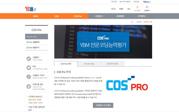 COS PRO는 Scratch, Entry, Pyton 등 높은 수준의 프로그램 언어 활용능력을 측정하는 시험을 말한다. COS를 취득한 사람들은 높은 수준의 프로그래밍 활용 능력이 있음을 증명할 수 있어 프로그래밍 직종 계열 취업을 원하는 취업준비생들 사이에서 각광받는 자격증이라 할 수 있다. COS는 프로그래밍 비전공자나 문과 출신 전공자라도 코딩 능력을 증명해 프로그래밍 직종 취업을 잘 대비할 수 있고, 취업 후에도 유리하게 사용될 수 있어 취득이 권장되는 추세다.