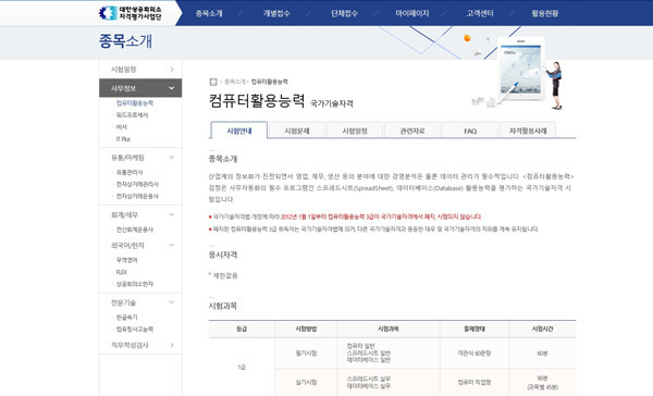 컴퓨터활용능력은 대한상공회의소에서 시행하는 사무정보 분야 국가기술자격 시험을 의미한다. 컴퓨터활용능력 자격등급은 1급과 2급이 있는데, 1급 시험은 2급 시험에 비해 꽤 난이도가 높은 것으로 평가된다. 1급 자격증 취득 시 공무원 시험 합격률에 있어 가산점을 받을 수 있기 때문에 공시생들 사이에서 꽤 인기가 있는 자격증이다. 국내외 일반기업과 정부기관, 금융기관 등 다양한 분야의 취업에 있어 활용성이 높은 자격증이라 볼 수 있다.