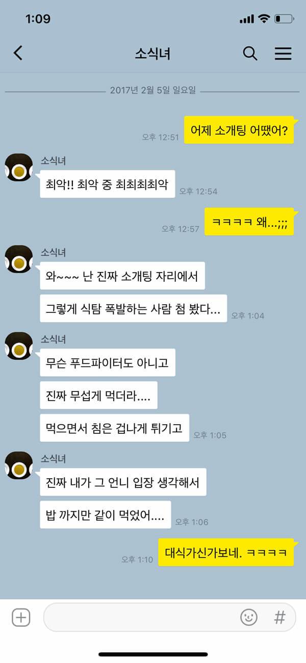 한창 맛있게 먹고 있는데 주위에서 맛없어 보인다, 난 그거 맛 엄청 없던데 정말 잘 먹네? 이런 반응을 보이면 맛있게 잘 먹던 음식도 한순간 맛없는 음식으로 추락한다. 남의 말이나 리액션에 굳이 좌지우지할 필요는 없지만 사람인지라 들리거나 보이는 말과 행동에 신경을 끄는 것도 쉬운 일은 아니다. 맛에 대한 평가는 지극히 주관적임을 잊지 말고 다른 사람이 먹고 있는 음식에 대한 평가는 하지 않는 것이 좋다.