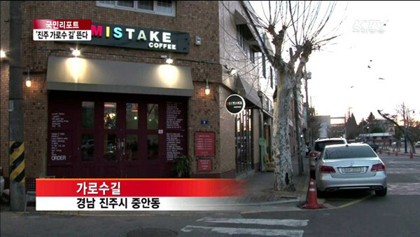 서울 신사동에도 가로수길이 있지만 진주에도 가로수길이 있다. 정식 명칭은 아니지만 진주시 사람들 사이에서 통하는 명칭으로 서울의 가로수길과는 다른 매력을 지니고 있다. 빽빽한 가로수 나무가 들어서 있지는 않지만 300m 정도에 이르는 거리에 작고 아담한 가게와 공방들, 카페와 갤러리가 들어서 있다. 원래 이곳은 인쇄소가 모여 있던 활발한 상권이었지만 점차 사라지면서 인적이 드물게 됐다. 그러다 예술가들과 젊은 사장님들이 조금씩 모이기 시작했고 각자 나름의 개성과 매력을 가진 가게들이 생겨나 지금의 거리를 만들었다. 잠시 쉬어가며 차 한 잔하고 싶을 때 둘러보면 좋을 듯하다.