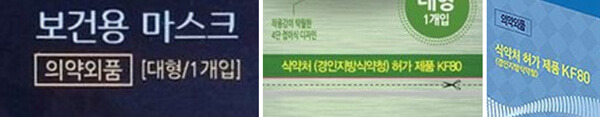 약국, 대형마트, 편의점 등에서 판매하는 보건용 마스크는 제품 포장에 ‘의약외품’, ‘식약처허가’라는 표시가 있어야 한다. 의약외품으로 허가된 보건용 마스크가 맞는지 알 수 있는 또다른 방법은 식약처 홈페이지( www.mfds.go.kr )나 의약품통합정보시스템( ezdrug.mfds.go.kr ) 홈페이지를 통해 확인해볼 수 있다.