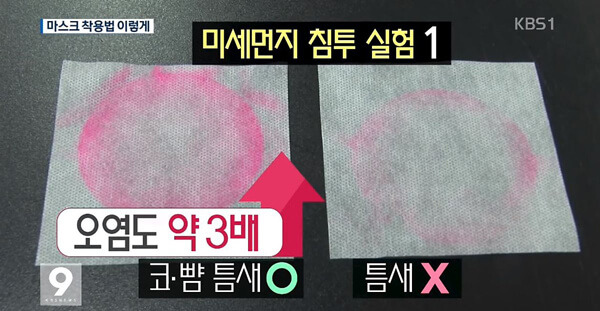 보건용 마스크는 보통 접이형이나 컵형 마스크가 많고, 필터교체형이나 배기밸브형 제품도 있다. 그중에서 보편적으로 많이 사용하는 접이형 마스크나 컵형 마스크를 착용할 때 가장 중요한 과정은 손가락으로 코 부분이 밀착되도록 본인의 얼굴형에 맞게 잘 눌러주는 것이다. KBS 뉴스 보도에 따르면 마스크를 끼고 코와 뺨 사이에 틈이 있는 경우 틈이 없는 경우보다 오염도가 약 3배나 높은 것으로 나타났다.